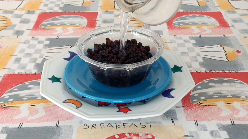 Deixe de molho as passas na água por cerca de 4 horas.