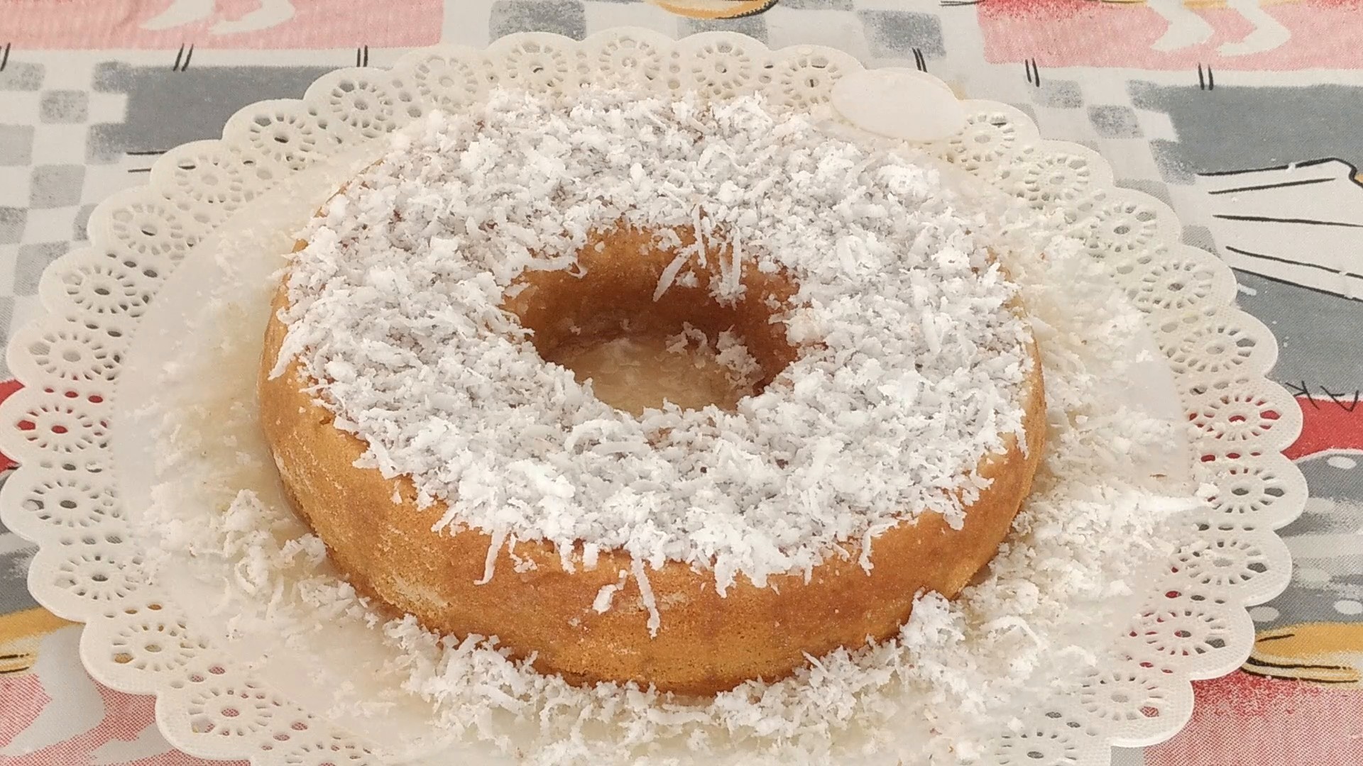 Cubra o bolo como leite condensado e polvilhe o coco ralado. Está pronto!