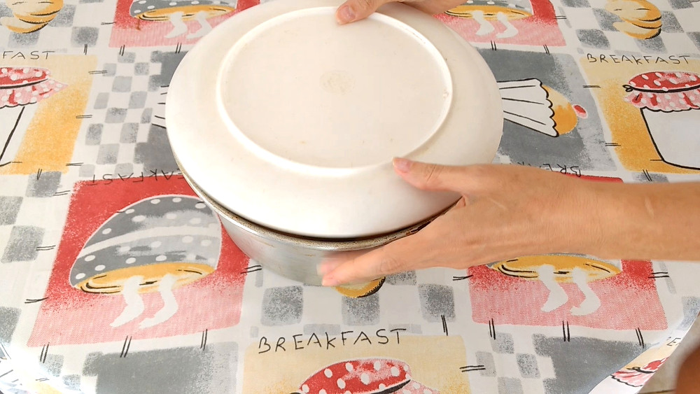 *Coloque sobre a forma um prato grande o suficiente para cobrir a sua superfície. Depois, vire o prato.