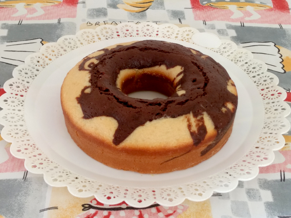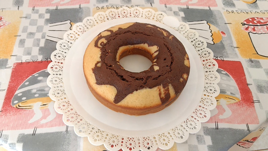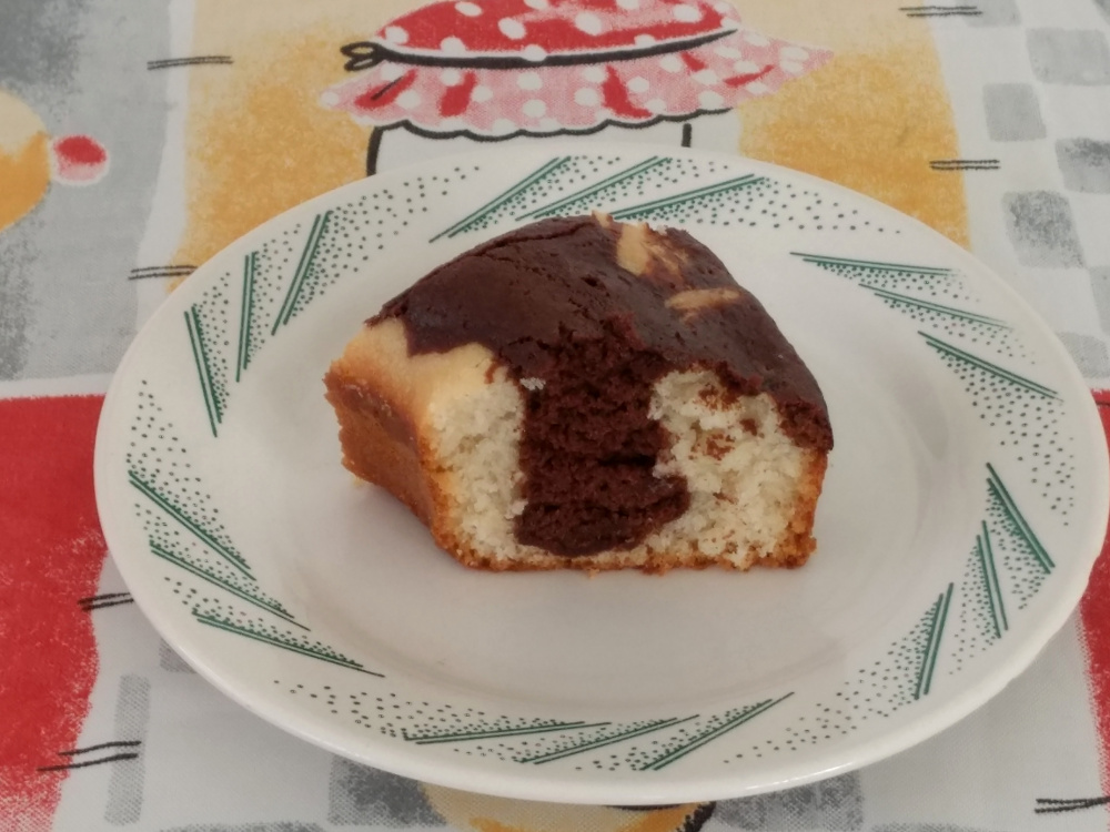 Está pronto o nosso delicioso Bolo Mesclado Vegano.