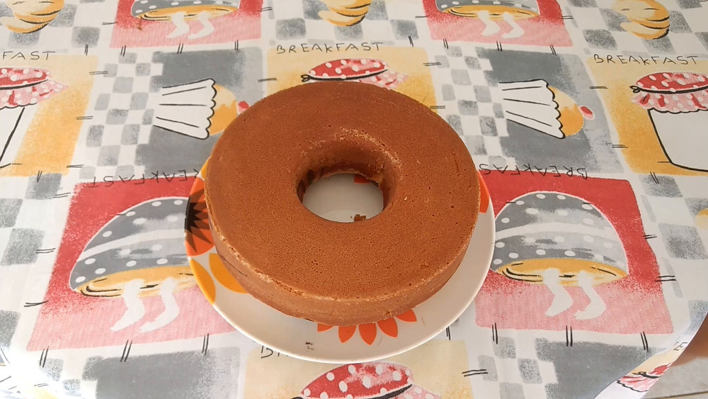 *É assim que fica o bolo após virar o prato.