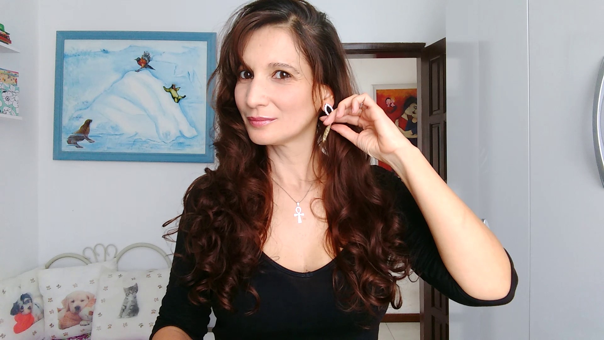 Coloco a tiara sanfonada, bem para trás da cabeça e depois deslizo-a para um dos lados da cabeça, dando origem a um penteado que deixa o cabelo bem longo e cacheado.