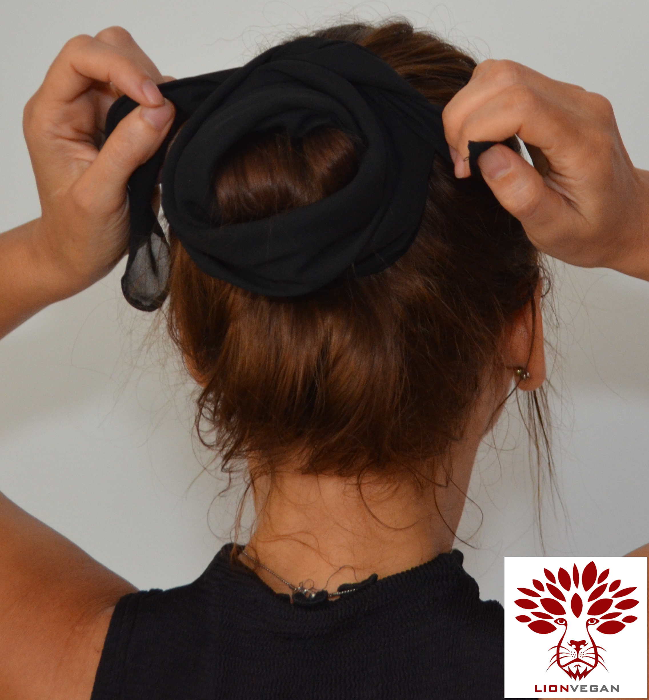 *De preferência, fique até o dia inteiro com este lenço ou pano nos cabelos. Quanto mais tempo os cabelos ficarem presos, mais bonito será o resultado.