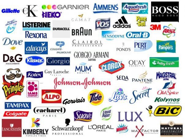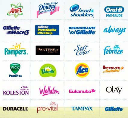 * Procter & Gamble Co. – P&G (Alfred Dunhill, Alldays, Always, Anna Sui, Antikal, Ariel, Atkinsons, Attends, Bess, Blend-a-Dent, Blend-a-Gum, Blend-a-Med, Blendax Anti Belag, Bogner, Bold, Bruno Banani, Camay, Carrera, Certina, Certina Med, Charles Jourdan, Cheer, Chiemsee, Chlorhexamed, Cindy Crawford, Clearasil, Comet, Cover Girl make up, Crest, Dash, Daymed, Ellen Betrix, Escada, Extase, Fairy, Firmodent, Gabriela Sabatini, Gabriele Strehle, Galileo, Gerry Weber, Ghost, Gillette Series, Giorgio Beverly Hills, Globe, Gucci, Head & Shoulders, Henry M Betrix, Herbal Essences, Hervé Léger, Hugo Boss, Ivory, Jean Patou, Lacoste, Laura Biagiotti, Lenor, Luvs, Marc O’Polo, Max Factor make up, Max Mara, Medinait, Meister Proper, Mexx, Mont Blanc, Muelhens, Naomi Campbell, Naturella, Oil of Olaz, Old Spice, Otto Kern, Pampers, Pantene, Pantene Pro-V, Priscilla Presley, Procter & Gamble, Puma, Rochas, Scannon, Secret Deodorant, Shulton, Sir, Spic & Span, Sumatra, Sure, Tempo, Tide, Tom Tailor, Tosca, Trussardi, Valentino, Vidal Sassoon, Wash & Go, The Wella Corporation-Sebastian, Wick, Wick Vaporub, Yardley, Yohji Yamamoto, Zest)