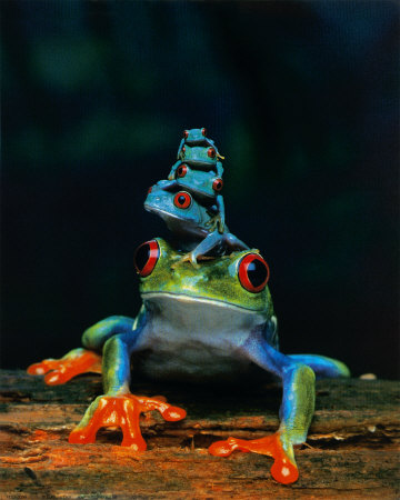 Tem outra espécie de sapos que depois que a fêmea põe os ovos o macho fica guardando os ovinhos. Quando os girinos começam a sair da casca o papai sapo os coloca dentro de seu saco vocal até que eles cresçam e se transformem em sapinhos adultos. Aí ele os solta para a vida.