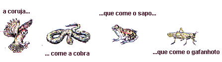 Por exemplo: os gafanhotos comem as plantas, os sapos comem os gafanhotos e as cobras comem os sapos. Isso ajuda a manter o equilíbrio natural entre animais e plantas na Natureza.