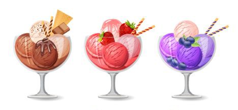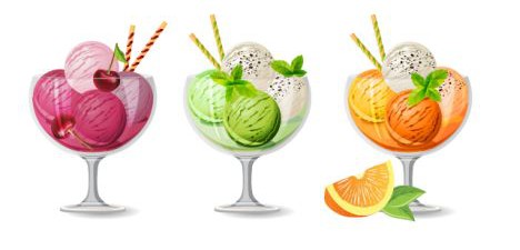 Alguns sabores: morango, limão , melancia, melão, figo , caqui , chocolate, baunilha e avelã com leite de soja, framboesa e muitos outros. Disponível em cone de waffle feito sem ingredientes de origem animal.