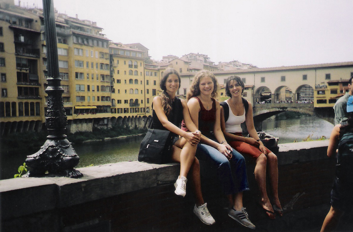 Eu em frente a Ponte Vecchio e duas simpatiquíssimas garotas. Não consigo lembrar o nome delas, mas uma é paulistana e a outra acho que é gaucha. Nunca mais vi estas meninas. Que pena!