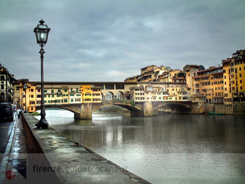 Construída em 1345, a Ponte Vecchio é a mais antiga ponte de Firenze. No mesmo local haviam sido construídas diversas pontes e passagens desde o período dos romanos.