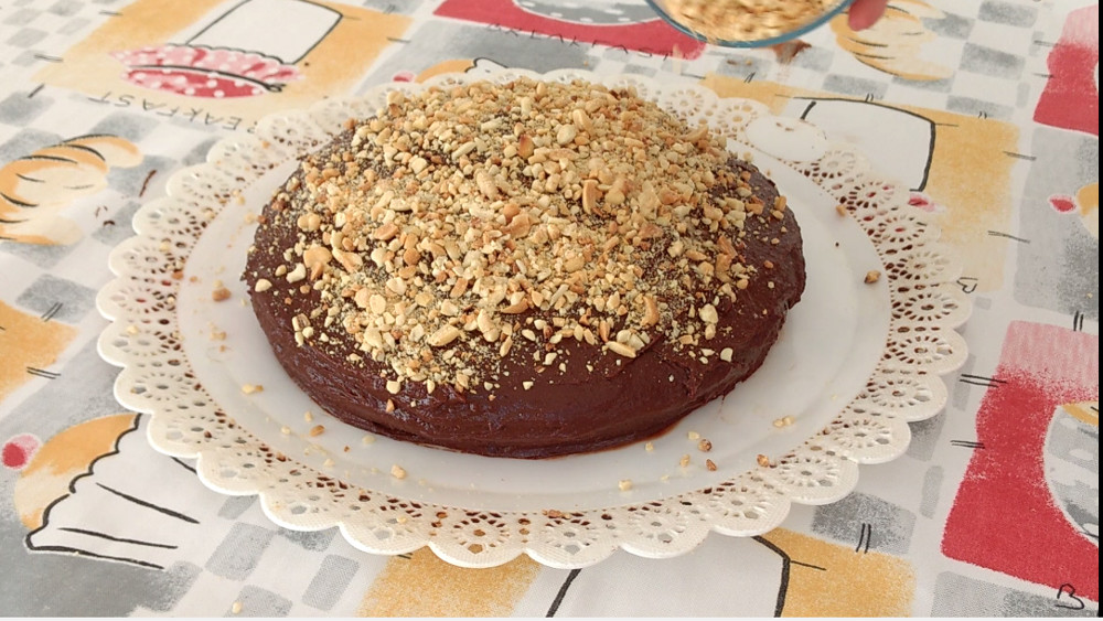 Se você é como eu, que adora amendoim, experimente colocá-lo triturado sobre a cobertura do bolo. Fica uma delícia!