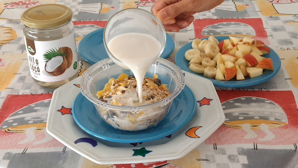 • Obs 8: Devido ao valor calórico, alguns nutricionistas aconselham consumir no máximo 4 colheres de sopa de granola, mas como sou muito gulosa, como o equivalente a 1 ou 2 xícaras de granola com leite vegetal, banana e maça.