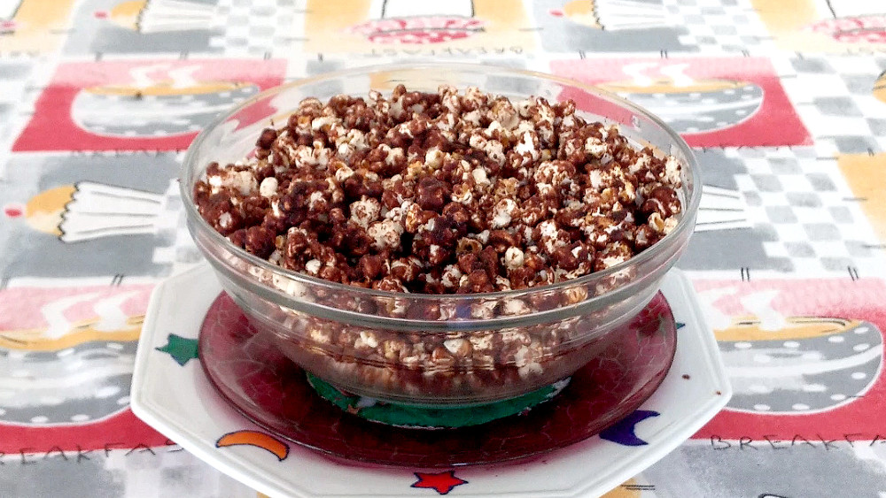 Está pronta a sua deliciosa Pipoca de Chocolate Vegana.