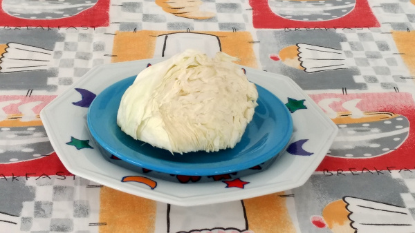 • Adicione água até cobrir o repolho, deixando faltarem dois dedos para encher.