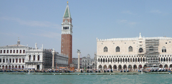 Veneza foi construída sobre bancos de lama baixos entre o Adriático. Por este motivo, está sob a influência das mares, sofrendo constantes enchentes. Na Idade Média, os doges foram responsáveis pelo desenvolvimento da cidade, aumentando a sua influência comercial pelo Mediterrâneo até Constantinopla, atual Istambul.