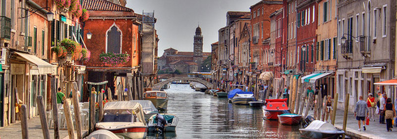 Murano é formada por um conjunto de ilhotas ligadas por pontes. Desde 1291 é o centro da indústria de vidraria. Nos séculos 15 e 16, tornou-se o principal pólo produtor de vidro da Europa.