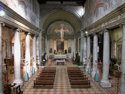 O interior da igreja possui 14 quadros de Giandomenico Tiepolo, retratando a vida em Veneza, além de pinturas de Veronese, Palma Il Giovane (O Moço) e a Última Céia de Tintoretto.