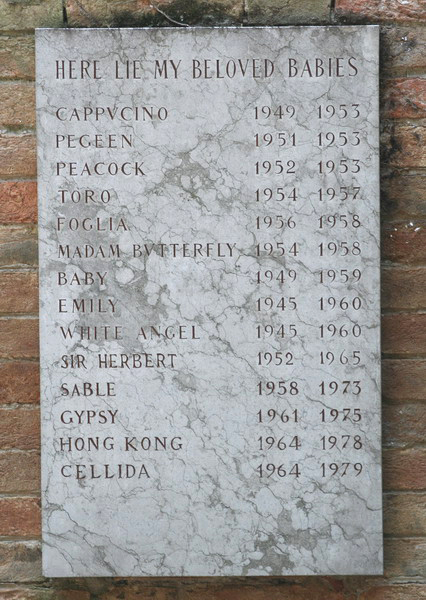 Existe também no jardim, o túmulo de Peggy, onde estão suas cinzas guardadas perto da sepultura dos seus amados cães.