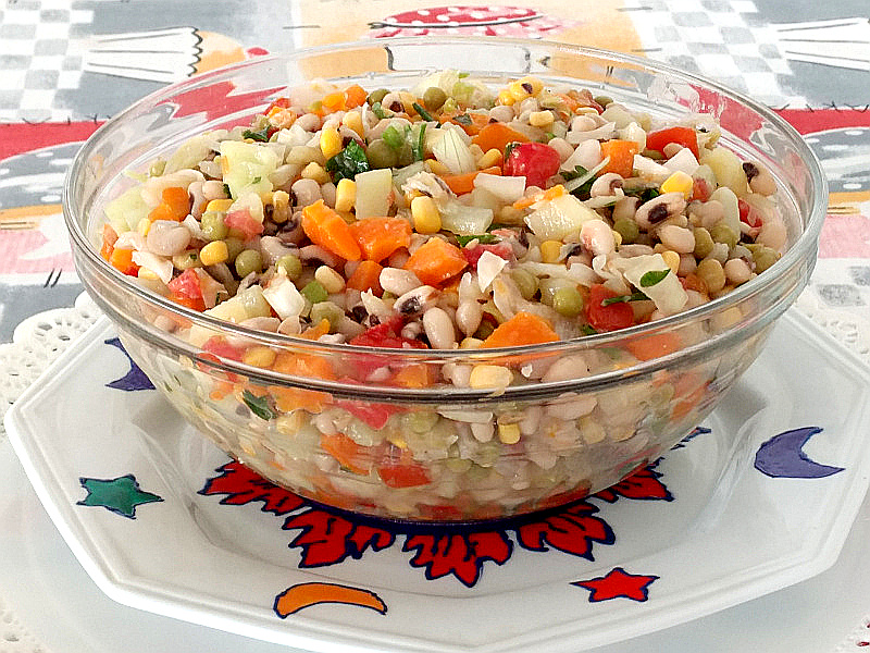 OBS 1: Você pode variar colocando mais legumes e verduras. Pode também acrescentar pimentões verdes, vermelhos e amarelos na quantidade que desejar. A diversidade de pimentões deixa a salada mais nutritiva, além de dar um sabor especial a salada.