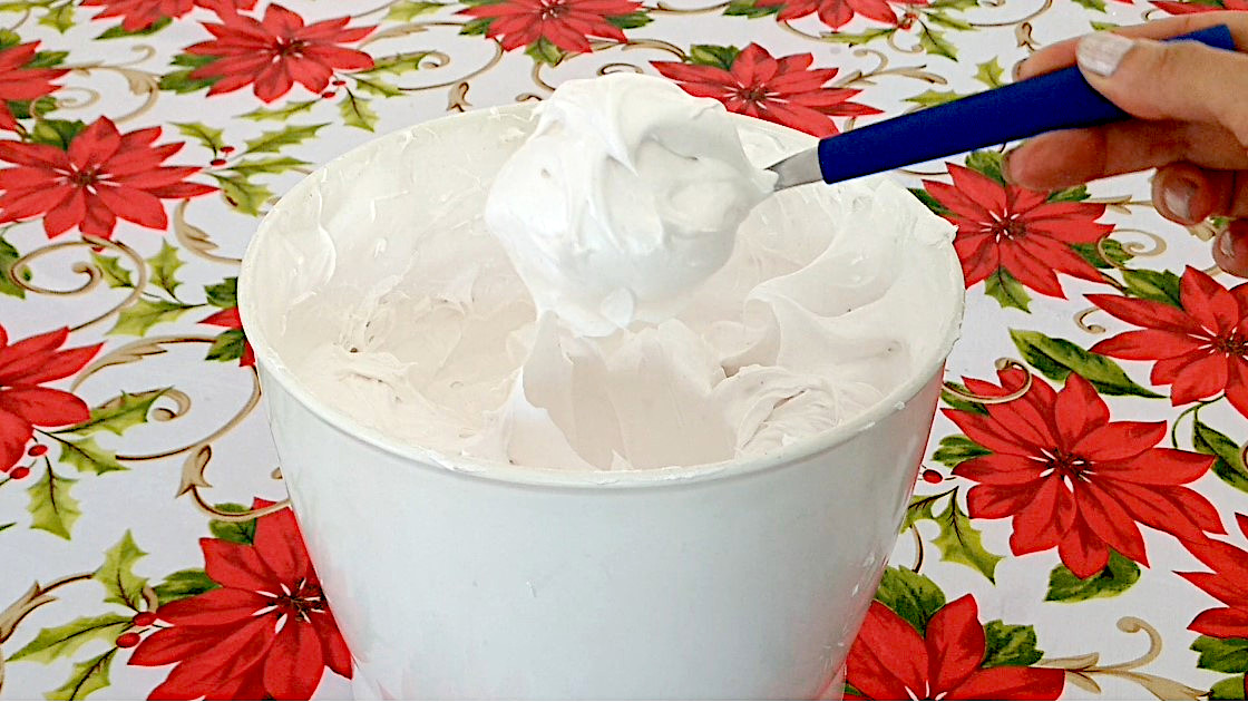 • Depois, aplique o chantilly sobre a cobertura de chocolate.